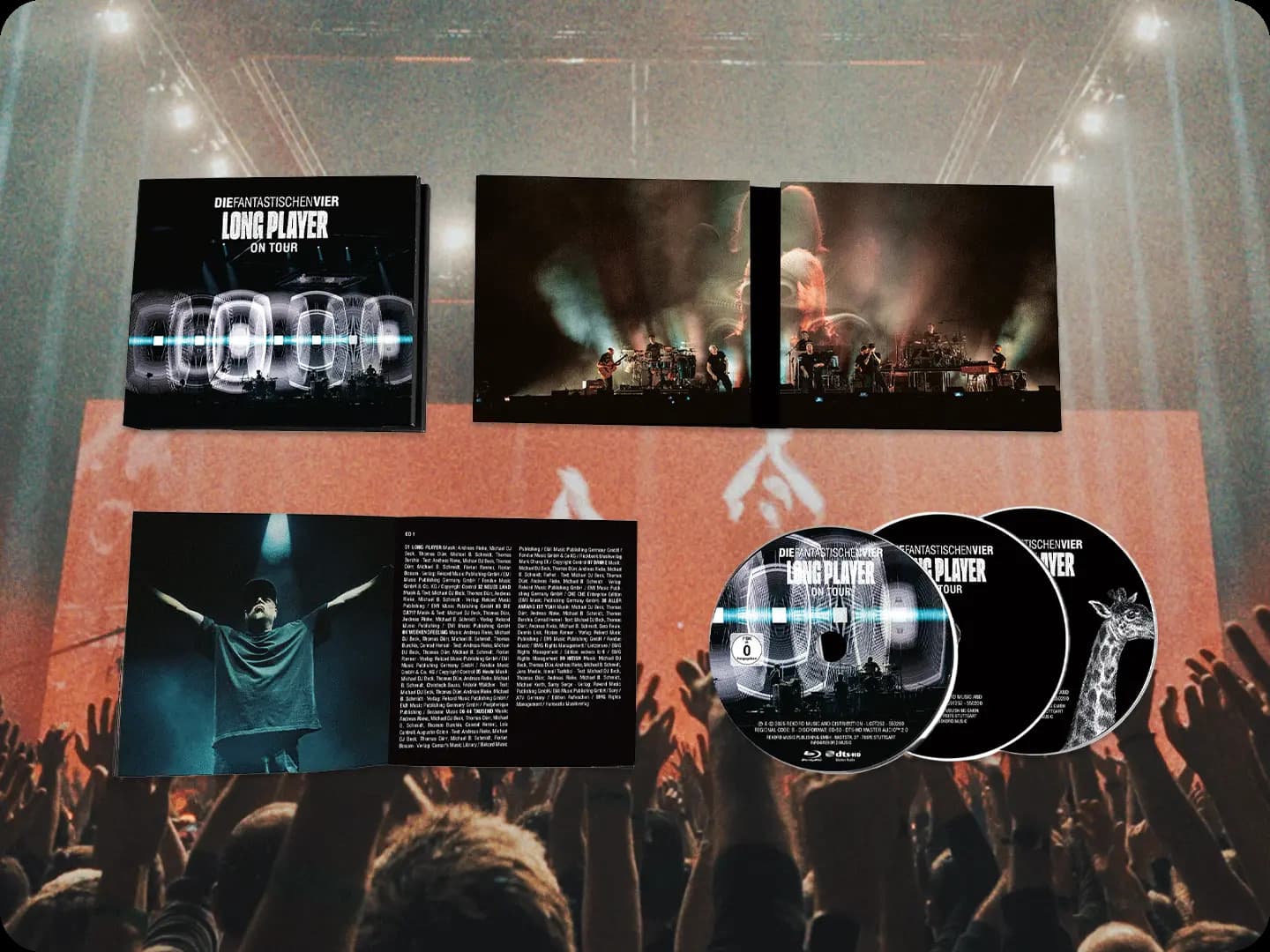 Erlebe das unvergessliche Heimspiel der Fantastischen Vier in seiner vollen Klanggewalt: „Long Player On Tour“ ist als aufwendig produziertes 3LP-Vinyl-Set, als CD- & Blu-ray-Bundle und bei allen Streaminganbietern verfügbar.